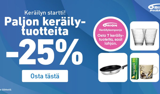 Tule keräilemään Orionin keräilykampanjan leimoja ja lunasta keräilylahja! Orionin keräilykampanja voimassa 31.12.2025 asti. Kampanjan ajan verkossa on vaihtuvia tarjouksia, joten tätä sivua kannattaa pitää silmällä.